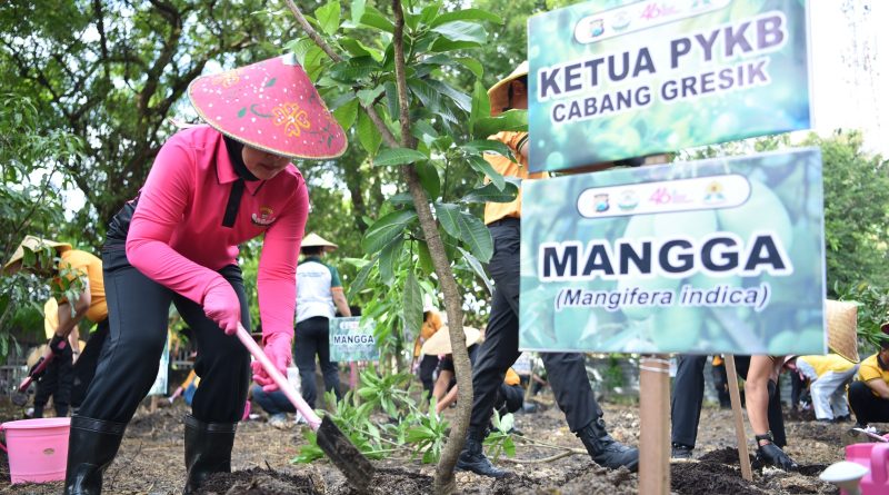 GRESIK – Polres Gresik Polda Jatim bersama Yayasan Kemala Bhayangkari (YKB) Cabang Gresik menggelar aksi penanaman puluhan pohon produktif di kawasan Asrama Polisi Randuagung, Kecamatan Kebomas.